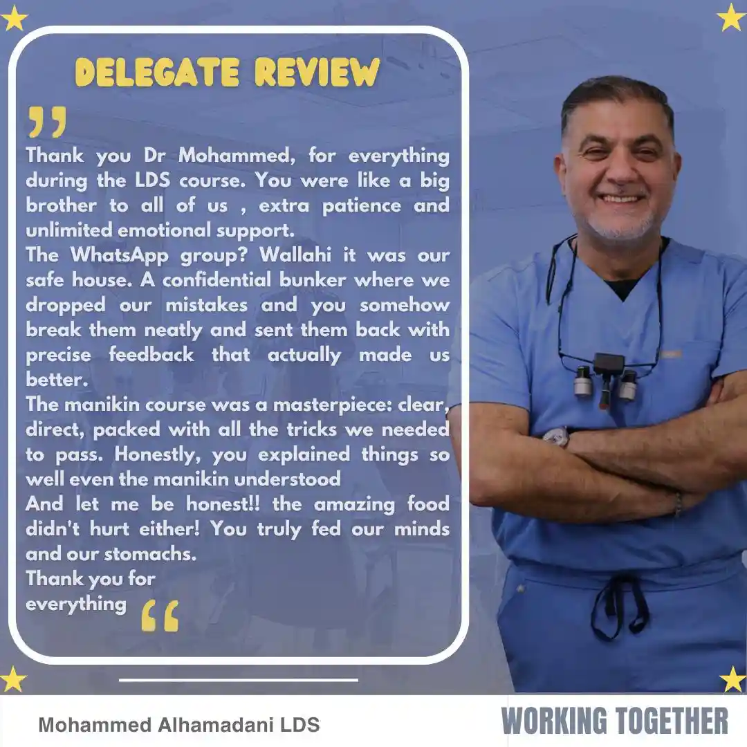 You built AL-HAMADANI LDS Courses to help overseas dentists pass their exams. But running it means reviewing manikin photos at 3am, answering the same WhatsApp questions, tracking every student manually.